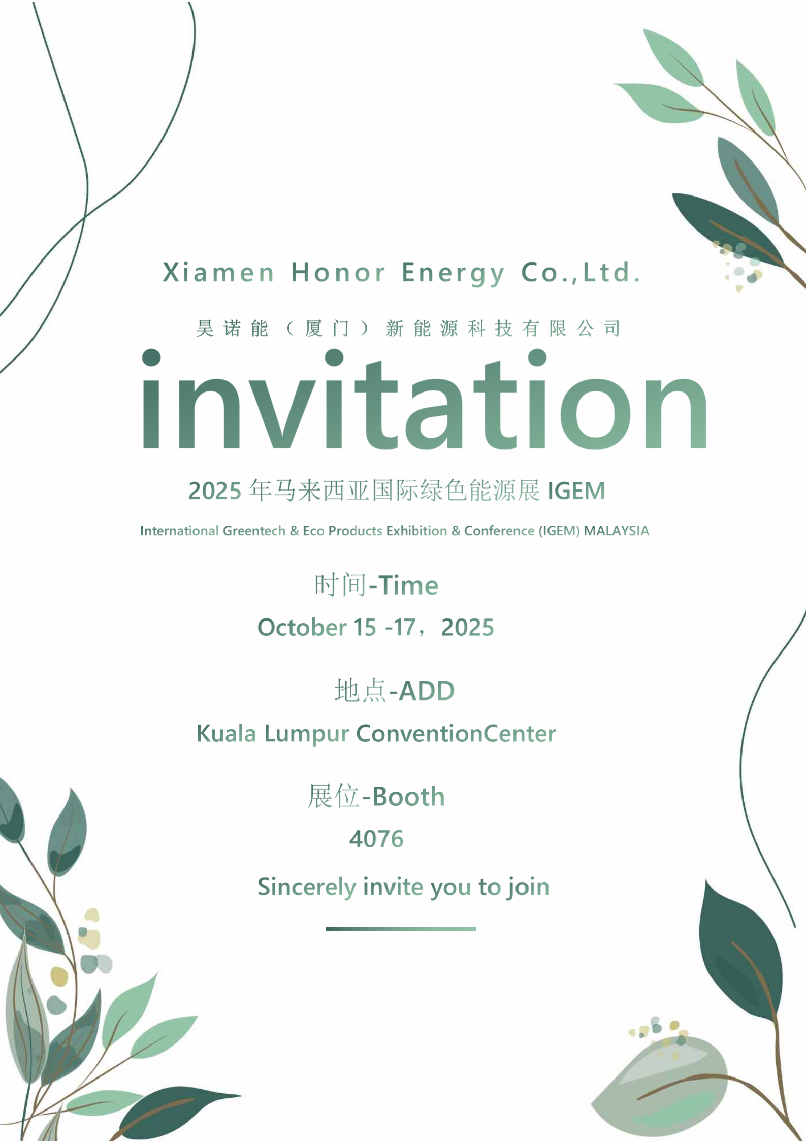 Kamisenanguntuk mengumumkan undangan resmi kami kepada Anda untuk Pameran Energi Hijau Internasional Malaysia (IGEM) 2025.